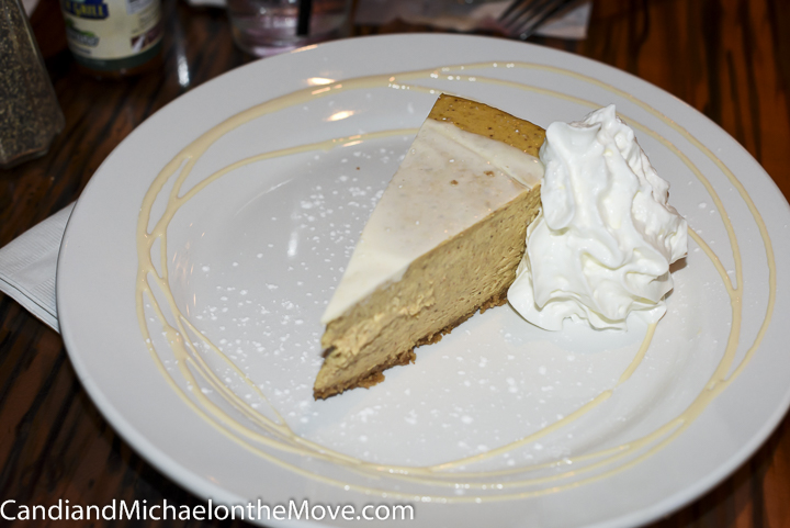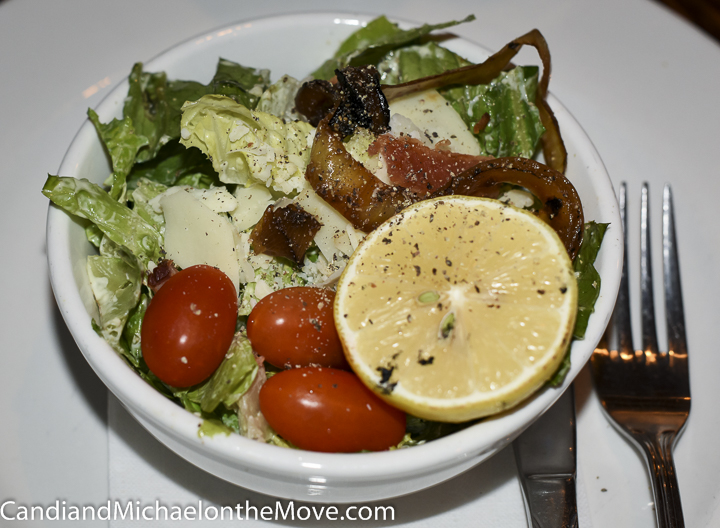 We really liked our server who was friendly and efficient. Michael started off with a Caesar Salad that was nothing like we’ve ever had before. It was Chopped Romaine tossed in a homemade Caesar dressing with applewood smoked bacon, fresh tomatoes, caramelized Vidalia onion, grilled lemon, and shaved parmesan. Very different, OK, but I wouldn’t get it again. We prefer a traditional Caesar salad.