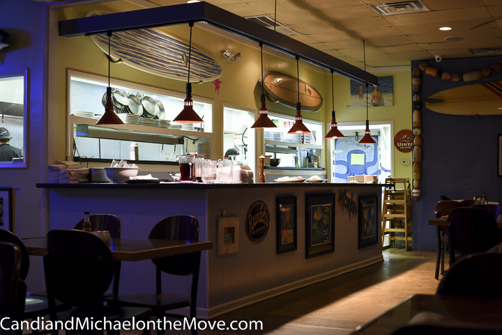 As expected from the name, this is a beachy bar and grill. Lots of beach art on the walls, an open kitchen and inviting bar for drinking, eating dinner or waiting for a table. We didn’t have to wait for long for a table to open up.