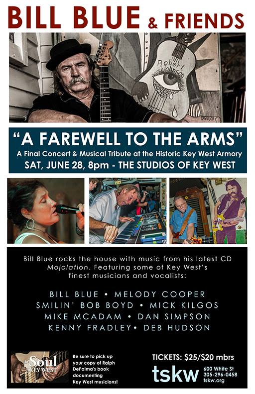 For Saturday’s show, A Farewell to the Arms, he gathered some of his favorite musicians together to play with him to commemorate the closing performance at The Studios of Key West historic Armory location.