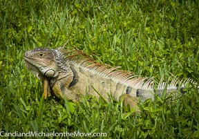 Only saw two iguanas today. This one is a veteran pro. He posed like a model – standing still, eating grass, walking towards Michael, holding his head up and then moving it from side to side as if saying – which view do you like best?