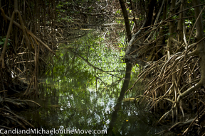 We tried to get pictures of a bright green iguana also, but the one we saw was much more shy and ran into the mangrove when we were still very far away. We’ll need to go back and try again another day.