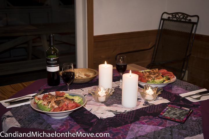 Sunday night dinner – Salmon Salad, candles, a good bottle of wine and the BEST Chef as fabulous company.  Lucky me!